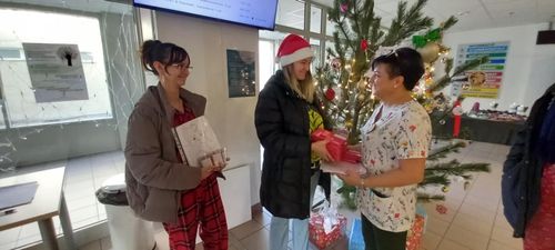 Ma iskolánk 13. osztályos grafikusai adták át a 9., 10., 11. osztályos diákok nevében a karácsonyi színezőket és eszközöket a Bajai Szent Rókus Kórház gyermekosztályának.